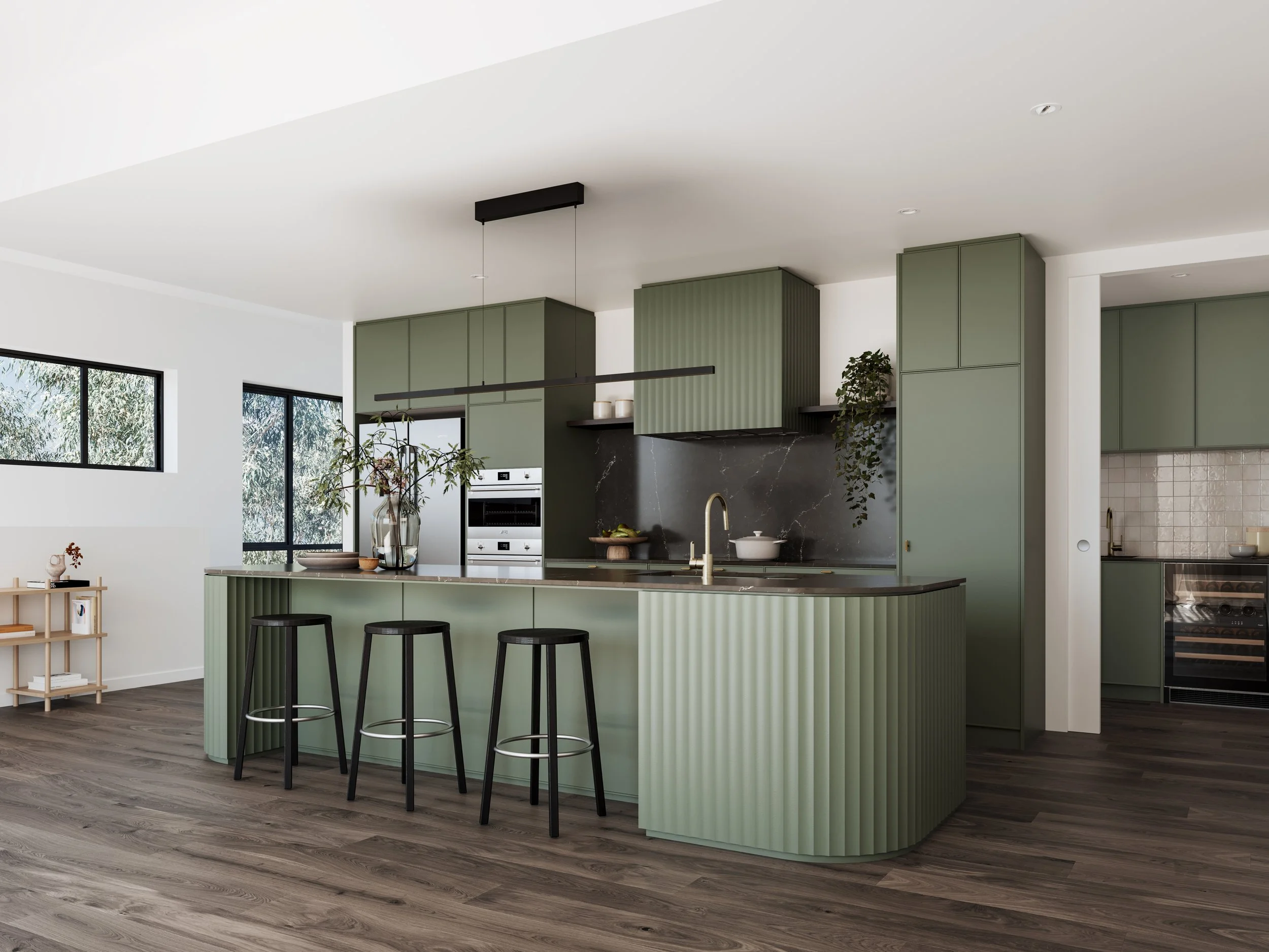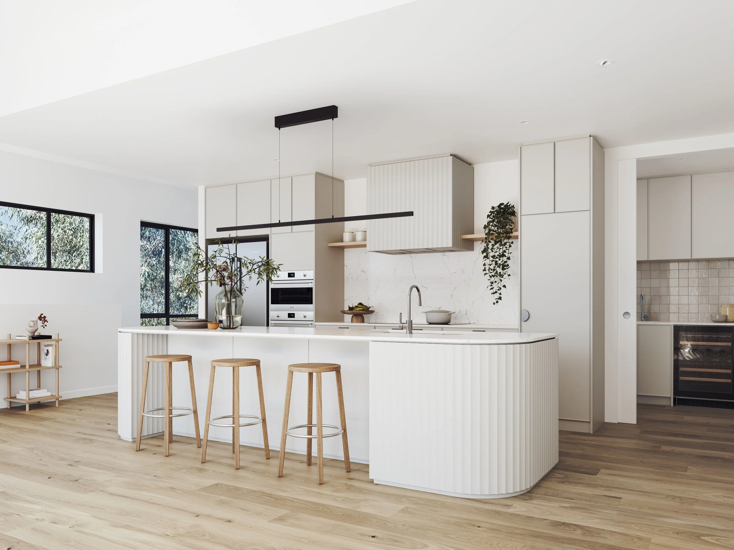 5KW rooftop solar system to each residence Kitchen with Smeg appliances, stone benchtops and opulent butler’s pantries