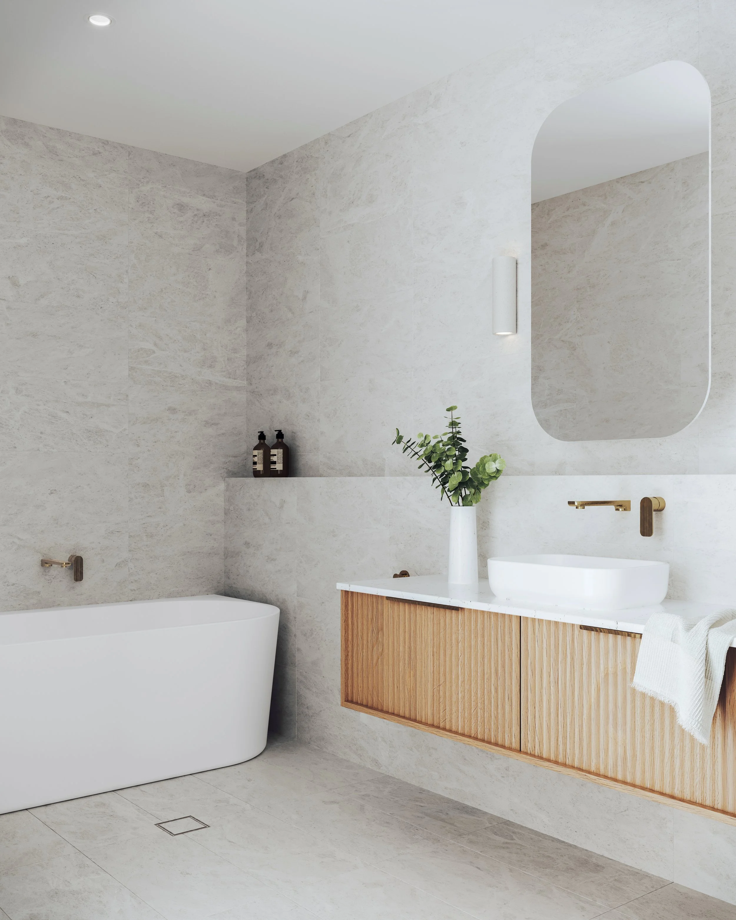 Bathrooms and ensuites with Villeroy & Boch fittings, complemented by under-tile heating Reverse cycle ducted heating and cooling